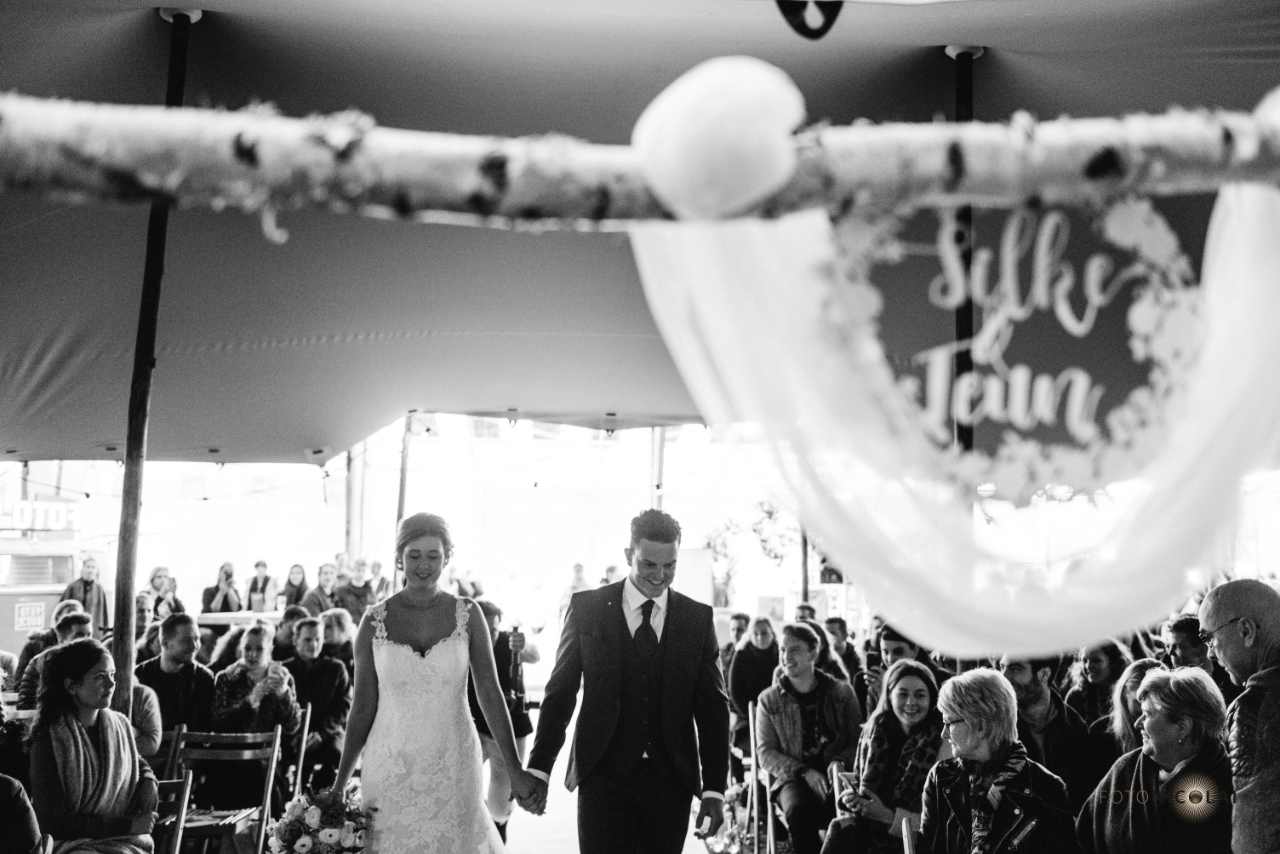 Genieten jullie mee van deze tweede real-life ceremonie? Deze prachtige foto’s van foto Nicolai zorgen ervoor dat je het echt beleeft. Het bruidspaar ziet er weer prachtig uit, ze straalt dankzij de visagie van Kapsalon Koppig en in een prachtige jurk van Lovely Lady. Tijdens deze ceremonie mogen de unieke trouwringen van de Edelsmederij om de vingers van het bruidspaar geschoven worden.