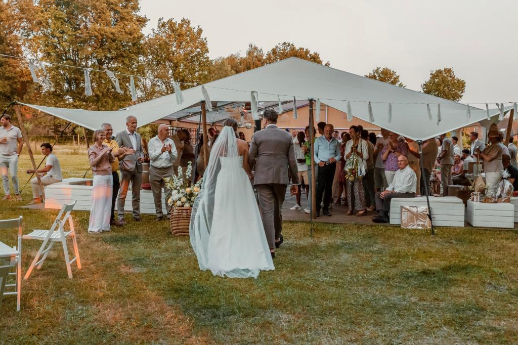 Tijd om te proosten op jullie huwelijk! Zorg voor entertainment dat geschikt is voor de avond, zoals een liveband of een DJ. Overweeg ook leuke activiteiten zoals een fotobooth, dansvloer met verlichting of zelfs vuurwerk. Én wat dachten jullie van een goochelaar? Ook is het heel tof om vanuit de ceremonie direct door te gaan met de openingsdans. Proost na jullie openingsdans met jullie lievelingsdrankje op jullie huwelijk en de party kan beginnen!
